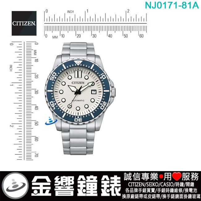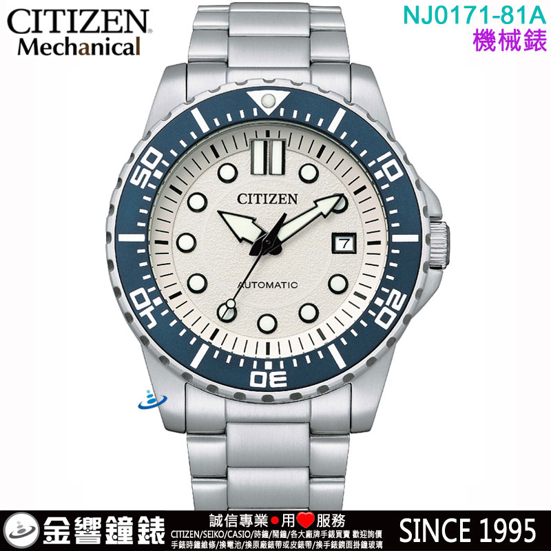 金響鐘錶精品購物網::專賣原廠公司貨:::歡迎議價或門市購買全年優惠 EST.1995 » CITIZEN系列 » Mechanical 機械錶 » 【金響鐘錶】預購,CITIZEN NJ0171-81A(公司貨,保固2年):::機械錶款,自動上鍊,日期顯示,強化玻璃鏡面,8210機芯,NJ017181A |