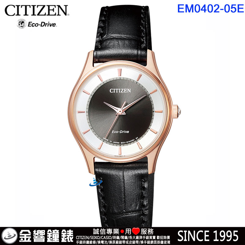 金響鐘錶精品購物網::專賣原廠公司貨:::歡迎議價或門市購買全年優惠 EST.1995 » CITIZEN系列 » 對錶 錶款 » 光動能對錶 LADY'S » 客訂商品,CITIZEN EM0402-05E(公司貨,保固2年):::日本製,Eco-Drive光動能,對錶系列(LADY'S),時尚女錶,藍寶石,5氣壓防水,刷卡或3期,EM04005 |