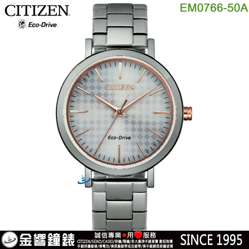 金響鐘錶精品購物網::專賣原廠公司貨:::歡迎議價或門市購買全年優惠 EST.1995 » CITIZEN系列 » 對錶 錶款 » 光動能對錶 LADY'S » CITIZEN EM0766-50A(公司貨,保固2年):::Eco-Drive,光動能,時尚女錶,LADY'S,PAIR,對錶商品,強化玻璃,E031機芯,刷卡或3期,EM076650A |
