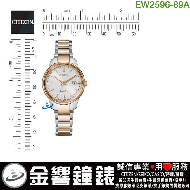 金響鐘錶精品購物網::專賣原廠公司貨:::歡迎議價或門市購買全年優惠 EST.1995 » CITIZEN系列 » 對錶 錶款 » 光動能對錶 LADY'S » 【金響鐘錶】預購,CITIZEN EW2596-89A(公司貨,保固2年):::Eco-Drive,光動能,對錶系列,女錶,藍寶石,日期,E011機芯,刷卡或3期,EW259689A |