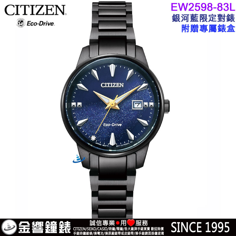 金響鐘錶精品購物網::專賣原廠公司貨:::歡迎議價或門市購買全年優惠 EST.1995 » CITIZEN系列 » 對錶 錶款 » 光動能對錶 LADY'S » 【金響鐘錶】預購,CITIZEN EW2598-83L(公司貨,保固2年):::銀河藍限定對錶,Eco-Drive,光動能,女錶,藍寶石,日期,E111機芯,EW259883L |