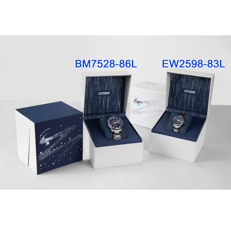 亞洲限定款 銀河藍限定對錶 限量編號:1251/1800 對錶系列 女款型號:EW2598-83L 男款型號:BM7528-86L ●原廠建議售價:NT$12,500 ●Eco-Drive光動能 充滿電後可連續運作6個月 ●JAPAN MOV'T 日本製機芯
