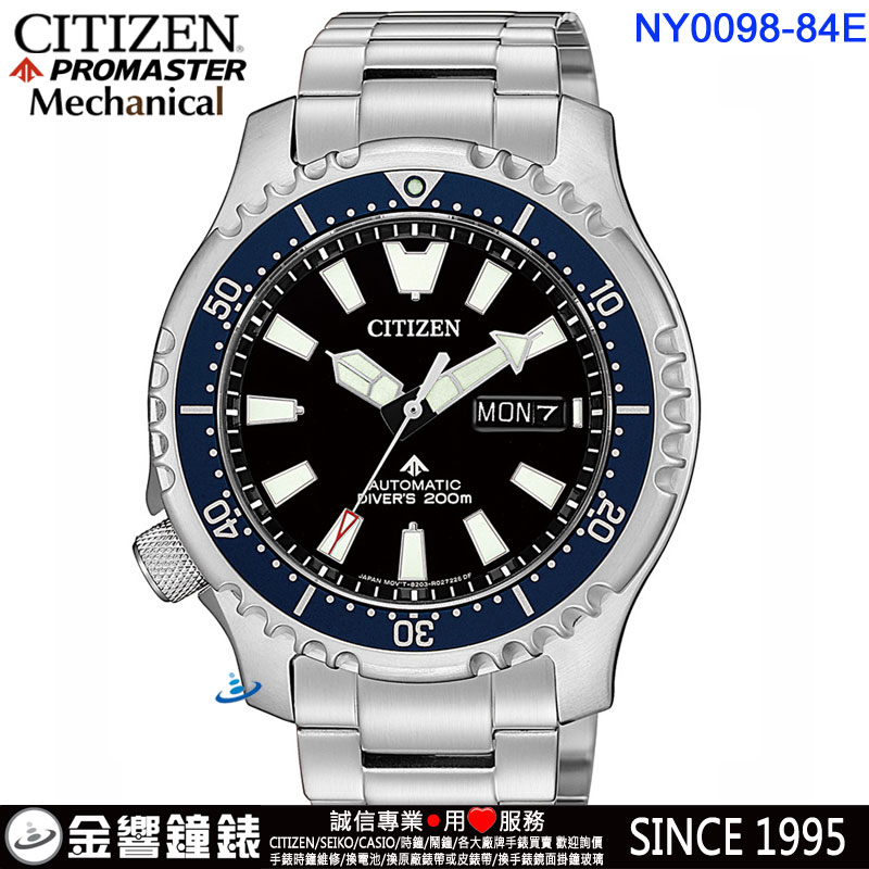 金響鐘錶精品購物網::專賣原廠公司貨:::歡迎議價或門市購買全年優惠 EST.1995 » CITIZEN系列 » PROMASTER 錶款 » CITIZEN NY0098-84E(公司貨,保固2年):::PROMASTER,自動上鍊兼手上鍊,機械錶,潛水錶,防水性能水深200公尺,星期日期顯示,8203機芯,刷卡或3期,NY009884E |