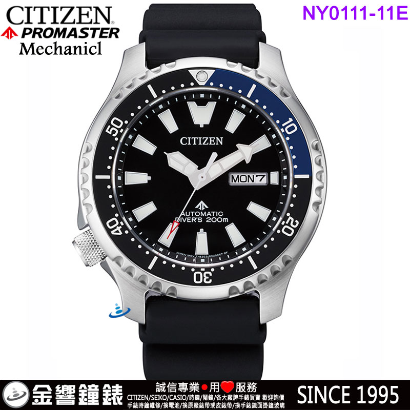 金響鐘錶精品購物網::專賣原廠公司貨:::歡迎議價或門市購買全年優惠 EST.1995 » CITIZEN系列 » PROMASTER 錶款 » 【金響鐘錶】現貨,CITIZEN NY0111-11E(公司貨,保固2年):::PROMASTER,自動上鍊,機械錶,潛水錶,防水水深200公尺,星期日期,8203機芯,刷卡或3期,NY011111E |