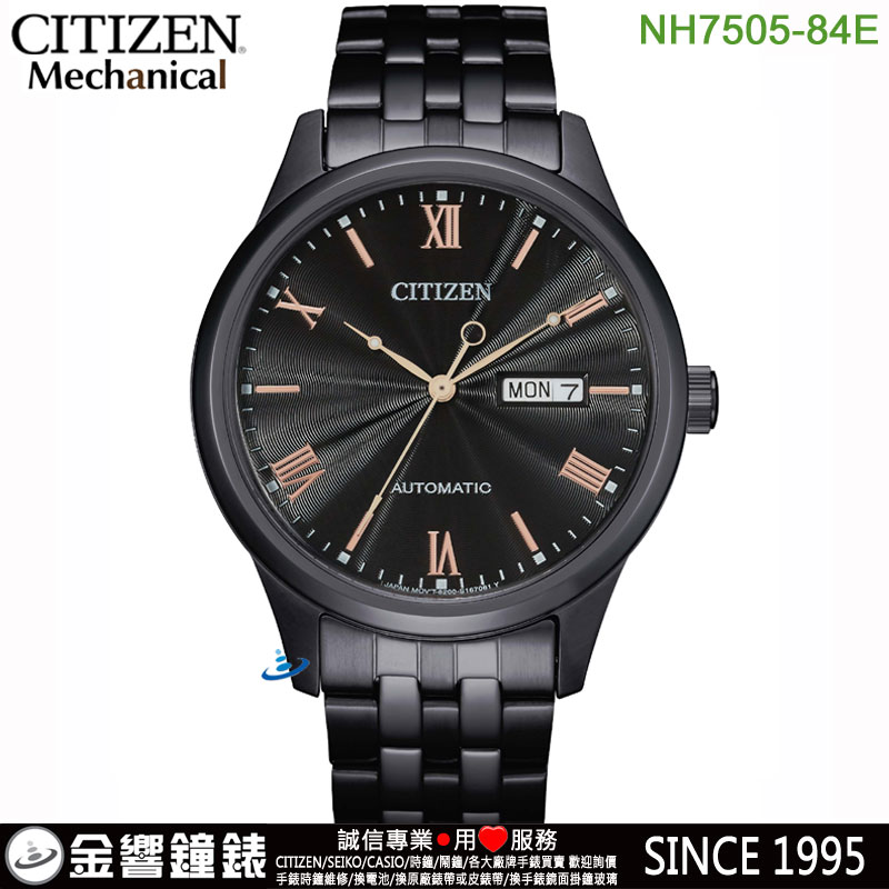 金響鐘錶精品購物網::專賣原廠公司貨:::歡迎議價或門市購買全年優惠 EST.1995 » 其他系列 » CITIZEN已完售錶款 » 已完售,CITIZEN NH7505-84E(公司貨,保固2年):::自動上鍊兼手上鍊,機械錶,藍寶石鏡面,寶石數21石,5氣壓防水,NH750584E |