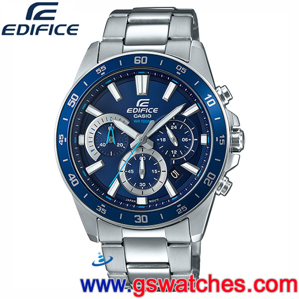 EDIFICE推出全新三針三眼錶款- EFV-570D系列,此系列皆為不鏽鋼材質錶帶,錶盤顏色提供黑色、藍色及白色,三針三眼及錶圈的刻度設計,可輕鬆閱讀各項時間和計時資訊,全系列具備防水100米、計時碼錶、獨立日期與星期顯示窗等多項功能。