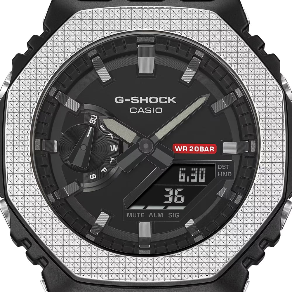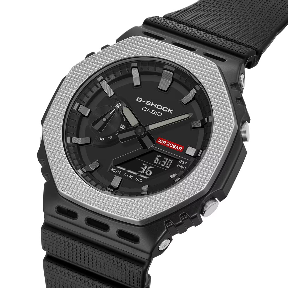 GM-5600 數位錶款具備經典外型和金屬錶圈,指針與數位結合的 GM-2100 則以極簡配色來突顯簡約和實用的時尚美感。 金屬錶圈帶有紋理,並點綴紅色的功能標籤,象徵 G-SHOCK 對全方位強悍的投入精神,透過設計展現純粹的功能追求。 錶圈形狀獨特,透過其孔洞可窺見中心錶殼,自信展現 G-SHOCK 的核心技術:耐衝擊構造。 GM-5600BM 和 GM-2100BM 的所有錶圈零件皆施以黑色離子鍍膜(除了頂層以外),提升了錶圈的深度和堅固性,同時造就更時尚統一的外觀。 流線型的通用設計加上實用功能,此錶款絕對會是您能長久配戴的好夥伴。 [注/意/事/項] ※實際商品顏色與照片寫真顏色略有差異,以實際商品顏色為準。 ※商品詳細規格或附屬品,以商品說明書公告為準。
