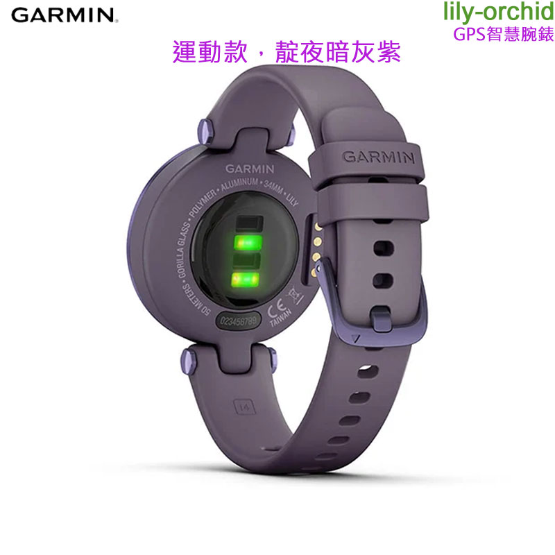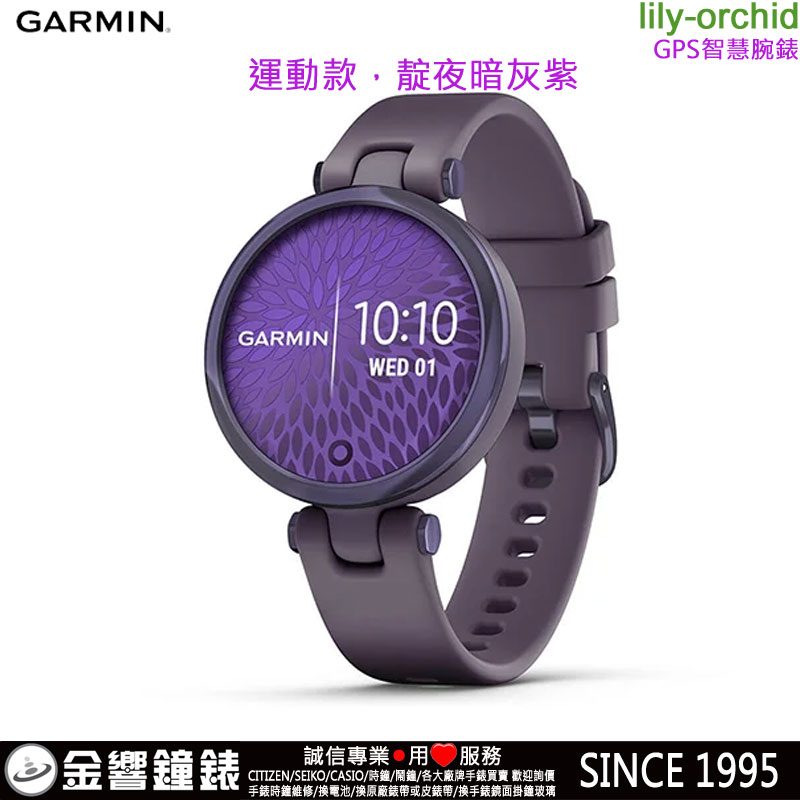 金響鐘錶精品購物網::專賣原廠公司貨:::歡迎議價或門市購買全年優惠 EST.1995 » 其他系列 » GARMIN運動手錶 » LILY GPS智慧腕錶 » 【金響鐘錶】預購,GARMIN lily-orchid 運動款-靛夜暗灰紫(公司貨,保固1年):::GPS智慧跑錶,Lily |
