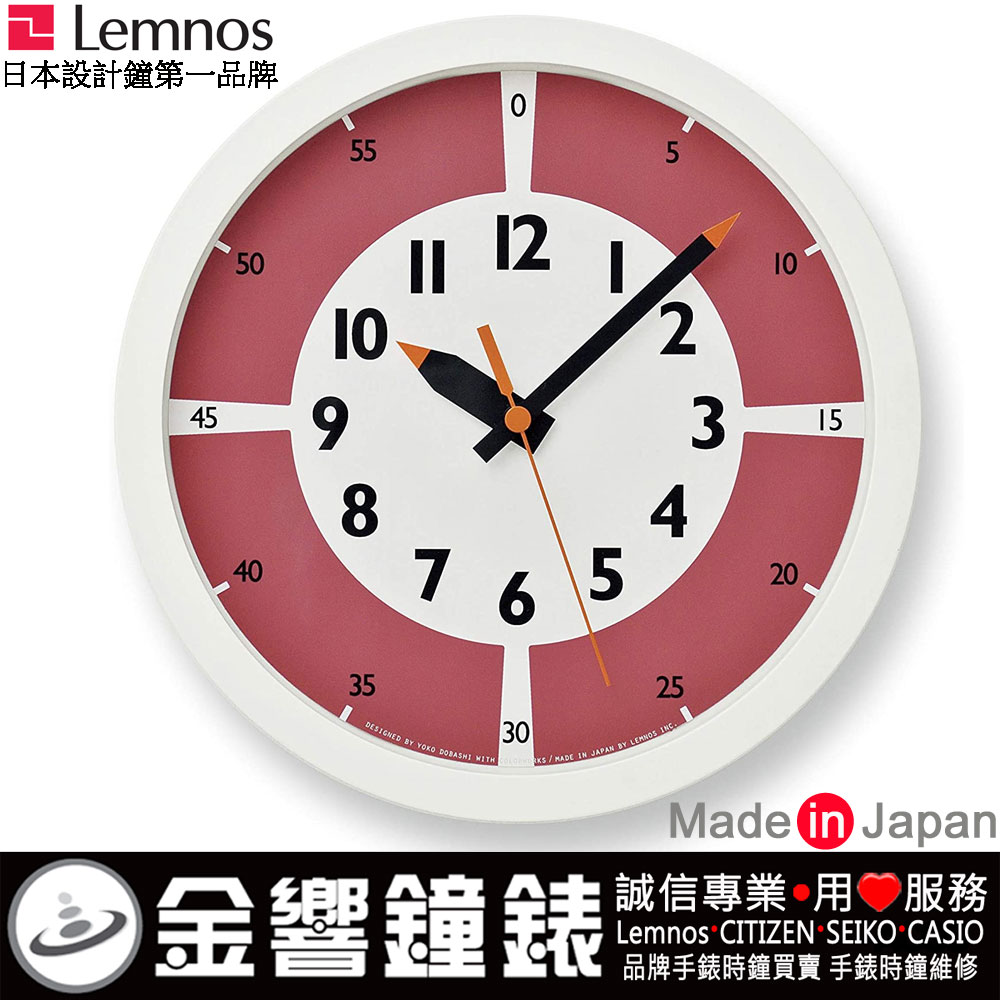 現貨供應中!! 有門市可自取!!! ●金響鐘錶販售之Lemnos時尚掛鐘/桌鐘/鬧鐘皆為日本Lemnos授權至台灣亞西巨ACGS,代理之原廠公司貨,原本保固期限由一年,從2021年6月1日開始延長至二年,保固範圍為非人為、外力所造成的原廠時計機心之故障。原廠保固二年原廠新品交換保固保證(無償以新品更換)與原廠紙盒及說明書。 Lemnos不只是時鐘,是有實用性的藝術品,由知名設計師所設計。所以台灣人也能用親民的價錢就能在家中擺設設計藝術品,提升生活品質跟氛圍。讓家更有舒服、溫暖、有質感的味道。 日本製,「fun pun clock(ふんぷんくろっく)」稍微幽默的名稱,名稱由來如下:“ 5”,“ 10”,“ 15”,“ 20”和“ Fun”交替重複。這款掛鐘簡單美觀,適合任何場所。