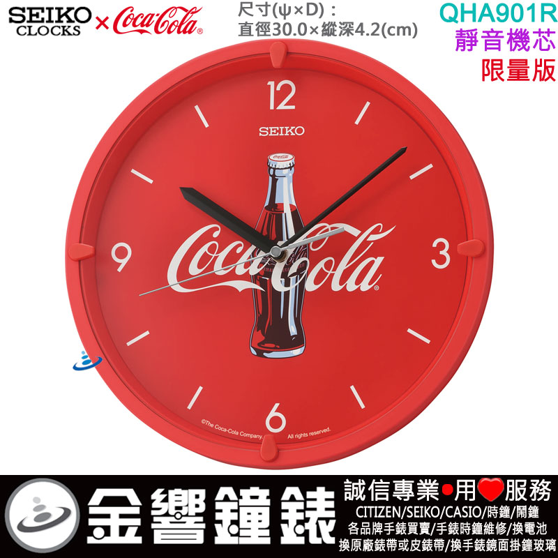 金響鐘錶精品購物網::專賣原廠公司貨:::歡迎議價或門市購買全年優惠 EST.1995 » 時鐘系列 » SEIKO 標準掛鐘 » SEIKO 標準掛鐘(滑動式秒針) » 【金響鐘錶】現貨,SEIKO QHA901R(公司貨,保固1年):::SEIKO X Coca-Cola,可口可樂聯名款,靜音機芯,掛鐘,直徑30cm,QHA-901R |