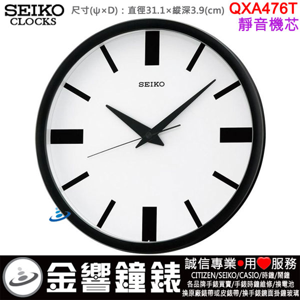 金響鐘錶精品購物網::專賣原廠公司貨:::歡迎議價或門市購買全年優惠 EST.1995 » 時鐘系列 » SEIKO 標準掛鐘 » SEIKO 標準掛鐘(滑動式秒針) » 缺貨,SEIKO QXA476T(公司貨,保固1年):::SEIKO 掛鐘,靜音機芯,直徑31.1cm,時鐘,QXA-476T |