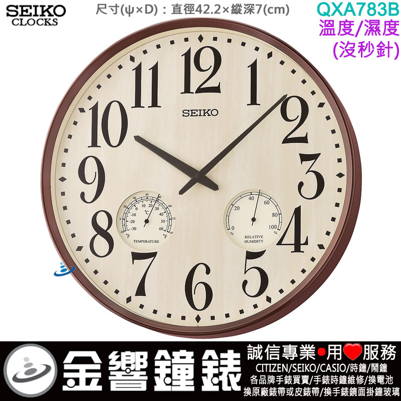 金響鐘錶精品購物網::專賣原廠公司貨:::歡迎議價或門市購買全年優惠 EST.1995 » 時鐘系列 » SEIKO 標準掛鐘 » SEIKO 標準掛鐘(滑動式秒針) » 【金響鐘錶】現貨,SEIKO QXA783B(公司貨,保固1年):::SEIKO時尚掛鐘,溫度,濕度,溫濕度,時鐘,塑膠材質,直徑42.2cm,QXA-783B |