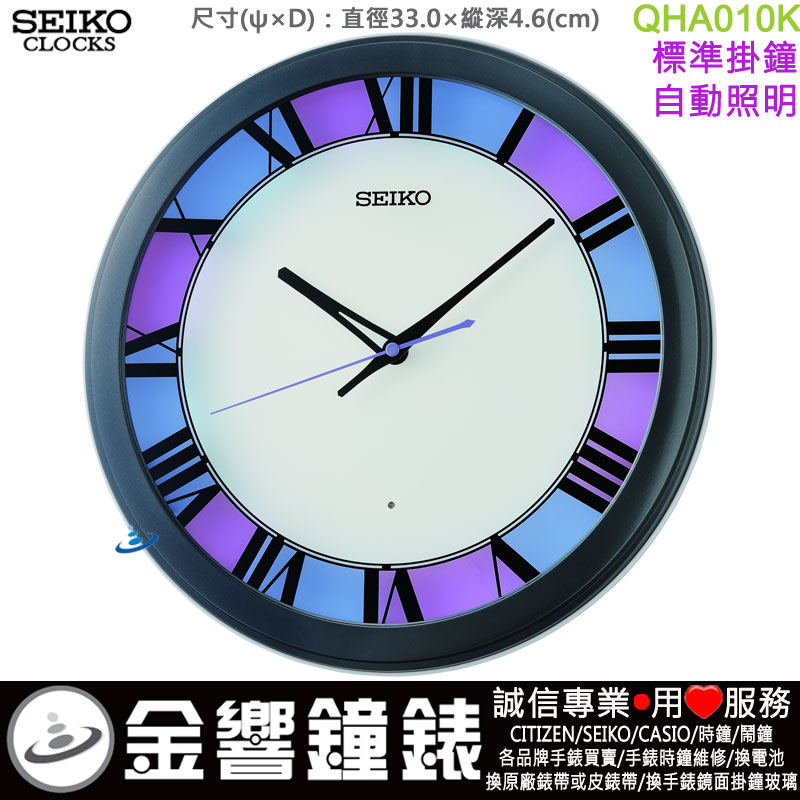 金響鐘錶精品購物網::專賣原廠公司貨:::歡迎議價或門市購買全年優惠 EST.1995 » 時鐘系列 » SEIKO 標準掛鐘 » SEIKO 標準掛鐘 » 【金響鐘錶】現貨,SEIKO QHA010K(公司貨,保固1年):::SEIKO時尚掛鐘,一秒一動秒針,自動照明,時鐘,塑膠材質,直徑33cm,QHA-010K |
