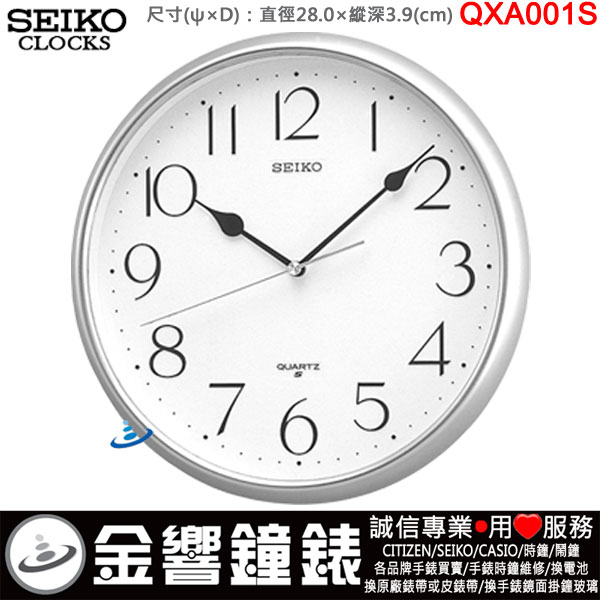 金響鐘錶精品購物網::專賣原廠公司貨:::歡迎議價或門市購買全年優惠 EST.1995 » 時鐘系列 » SEIKO 標準掛鐘 » SEIKO 標準掛鐘 » 【金響鐘錶】現貨,SEIKO QXA001S(公司貨,保固1年):::SEIKO 時尚掛鐘,直徑28cm,時鐘,QXA-001S |