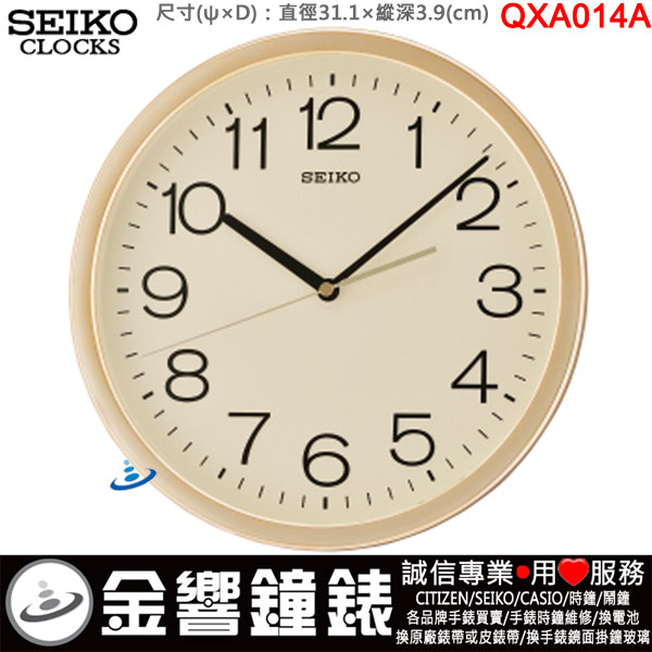 金響鐘錶精品購物網::專賣原廠公司貨:::歡迎議價或門市購買全年優惠 EST.1995 » 時鐘系列 » SEIKO 標準掛鐘 » SEIKO 標準掛鐘 » 【金響鐘錶】現貨,SEIKO QXA014A(公司貨,保固1年):::SEIKO 標準掛鐘,直徑31.1cm,時鐘,QXA-014A |