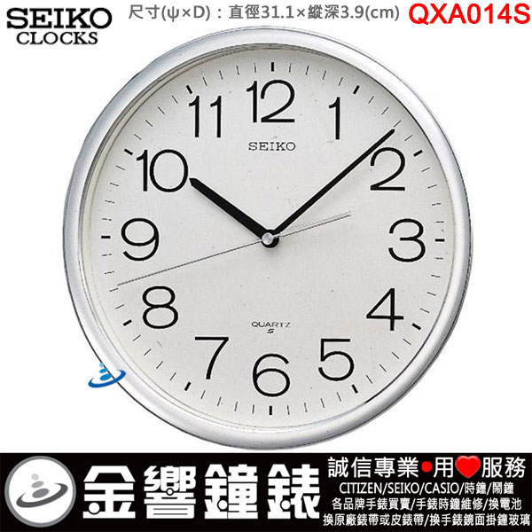 金響鐘錶精品購物網::專賣原廠公司貨:::歡迎議價或門市購買全年優惠 EST.1995 » 時鐘系列 » SEIKO 標準掛鐘 » SEIKO 標準掛鐘 » 【金響鐘錶】現貨,SEIKO QXA014S(公司貨,保固1年):::SEIKO 標準型掛鐘,直徑31.1cm,時鐘,QXA-014S |