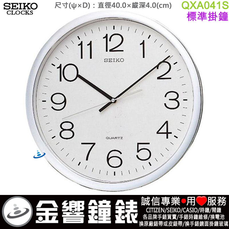 金響鐘錶精品購物網::專賣原廠公司貨:::歡迎議價或門市購買全年優惠 EST.1995 » 時鐘系列 » SEIKO 標準掛鐘 » SEIKO 標準掛鐘 » 【金響鐘錶】現貨,SEIKO QXA041S(公司貨,保固1年):::SEIKO 大鐘面,標準掛鐘,直徑40cm,時鐘,QXA-041S |