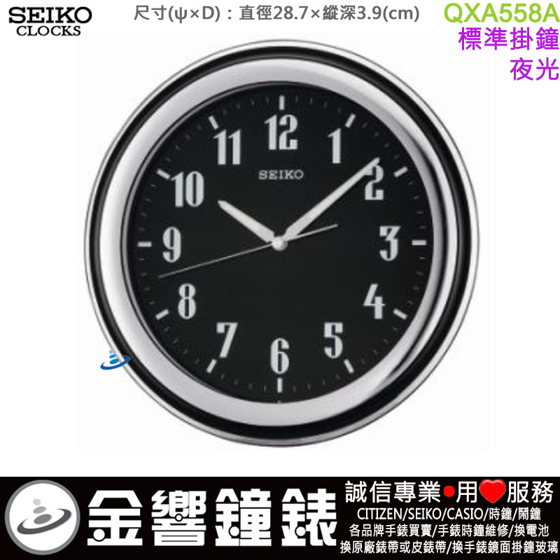 金響鐘錶精品購物網::專賣原廠公司貨:::歡迎議價或門市購買全年優惠 EST.1995 » 時鐘系列 » SEIKO 標準掛鐘 » SEIKO 標準掛鐘 » 【金響鐘錶】現貨,SEIKO QXA558A(公司貨,保固1年):::SEIKO 掛鐘(夜光指針)掛鐘,直徑28.7cm,同QXA313T,QXA-558A |