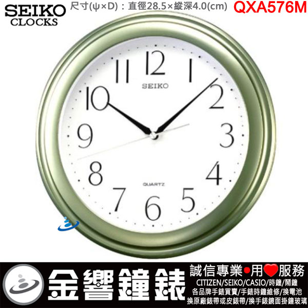 金響鐘錶精品購物網::專賣原廠公司貨:::歡迎議價或門市購買全年優惠 EST.1995 » 時鐘系列 » SEIKO 標準掛鐘 » SEIKO 標準掛鐘 » 【金響鐘錶】現貨,SEIKO QXA576M(公司貨,保固1年):::SEIKO 掛鐘,直徑28.5cm,時鐘,QXA-576M |