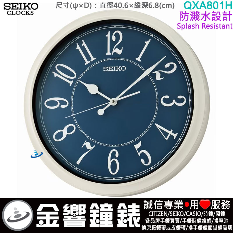 金響鐘錶精品購物網::專賣原廠公司貨:::歡迎議價或門市購買全年優惠 EST.1995 » 時鐘系列 » SEIKO 標準掛鐘 » SEIKO 標準掛鐘 » 【金響鐘錶】現貨,SEIKO QXA801H(公司貨,保固1年):::SEIKO時尚掛鐘,防濺水設計,Splash Resistant,時鐘,塑膠材質,直徑40.6cm,QXA-801H |
