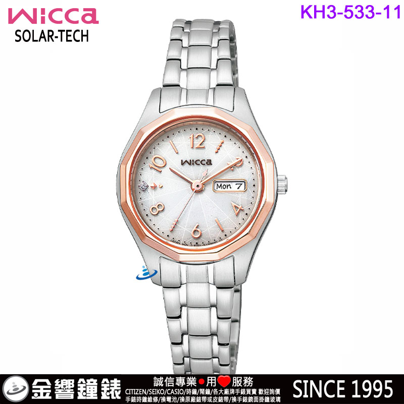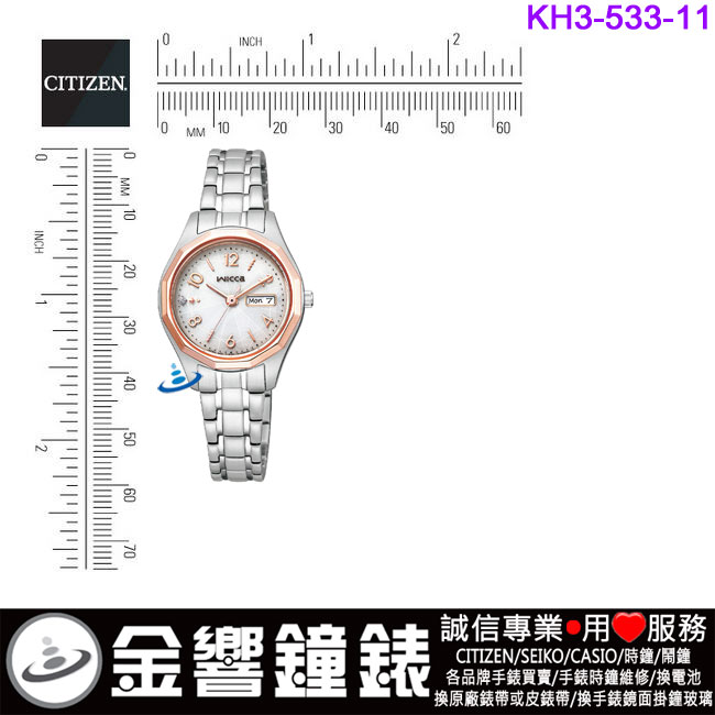 金響鐘錶精品購物網::專賣原廠公司貨:::歡迎議價或門市購買全年優惠 EST.1995 » CITIZEN系列 » WICCA 錶款 » WICCA 光動能錶款 » 【金響鐘錶】現貨,CITIZEN KH3-533-11(公司貨,保固1年):::Wicca,少女系列,SOLAR-TECH,太陽能,淑女錶,1顆水晶,星期日期,KH353311 |